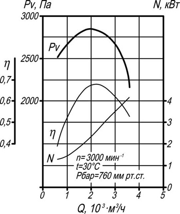 Аэродинамическая характеристика вентилятора ВД-3,5.