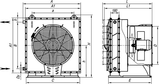 | Габаритные размеры, мм | A | A1 | a | B | b | C | D | Dy | E | H | h | L | L1 |