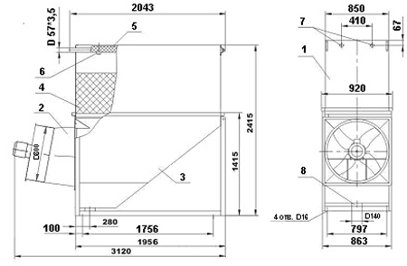 Габаритные размеры градирни ГРД - 32Н
